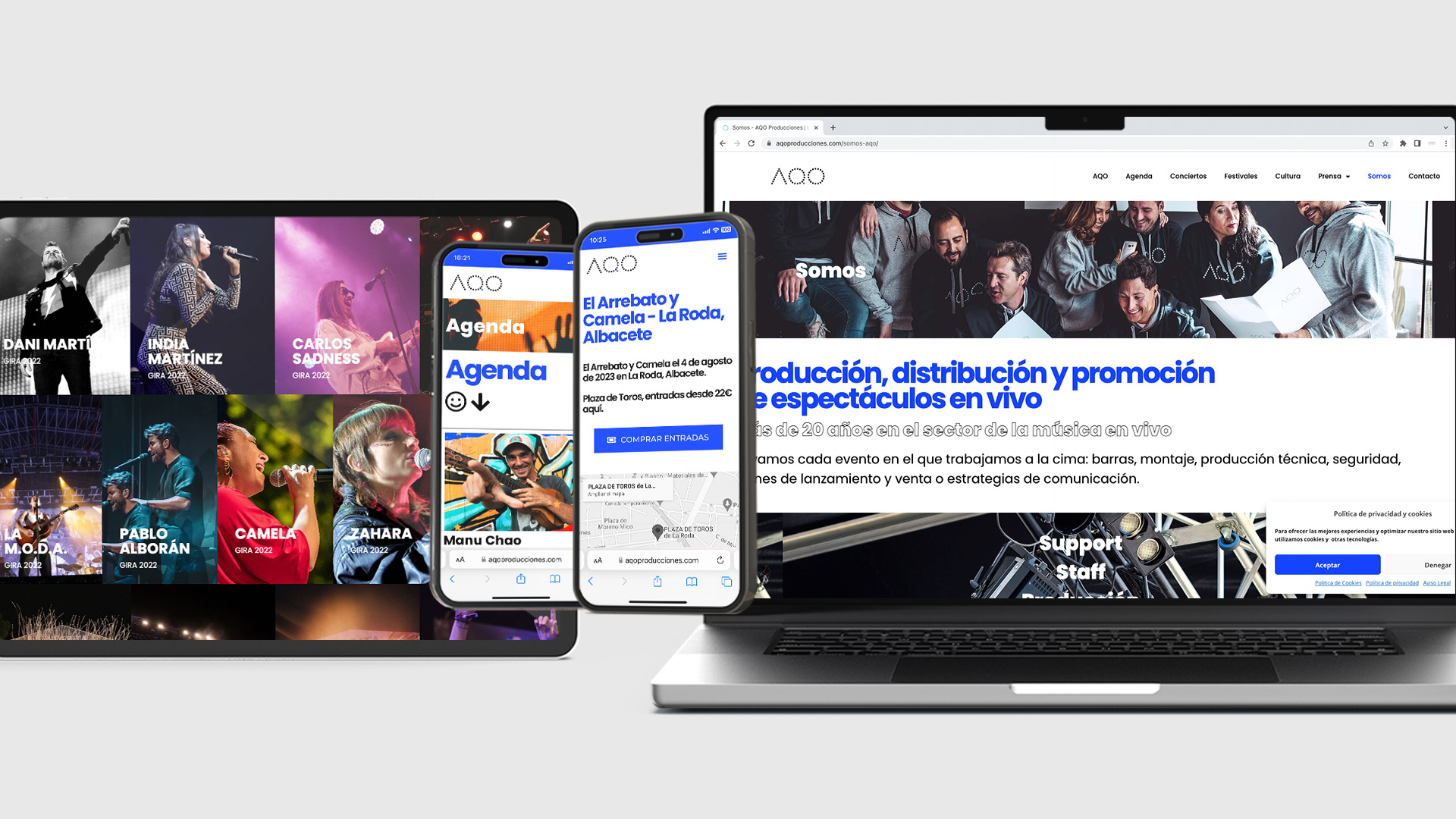 Branding integral para la promotora de eventos musicales y culturales AQO Producciones.